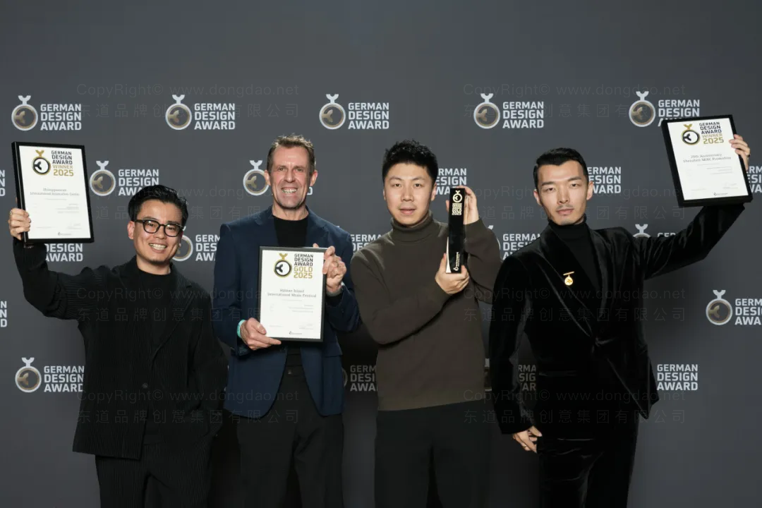 △点击播放视频2025年德国设计奖颁奖典礼于2月7日在德国法兰克福举行,东道受邀参加这一设计界盛大活动,并与来自全球各地的设计界精英开展互动交流。德国设计奖(GermanDesignAward)作为全球工业设计领域最具公信力的国际奖项之一,由德国品牌设计委员会主办。自1953年创办以来,通过其权威评审体系,持续引领产品设计、视觉传达及建筑设计等领域的创新发展方向,其年度评选已成为衡量当代设计水准的重要国际标尺。东道品牌创意集团本届共斩获5项德国设计奖,其中,海南岛国际音乐节Branddesign更是荣膺最高奖——金奖!海南岛国际音乐节(Gold)HainanIslandInternationa